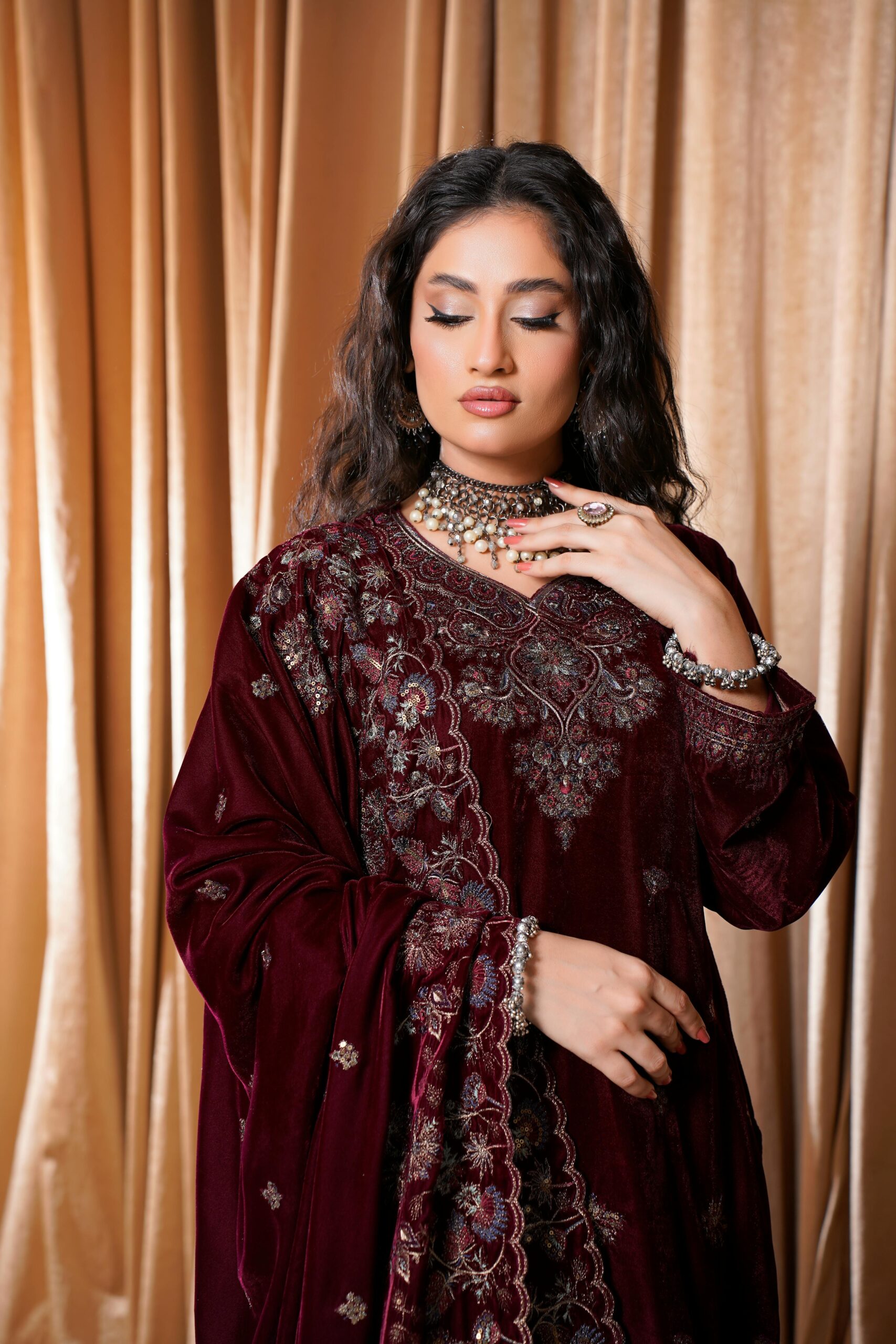The coordinated dupatta complements the suit with matching embroidery, adding balance and sophistication to the ensemble. Thoughtfully designed for ease of movement, the silhouette maintains structure while allowing comfort during extended celebrations. This suit set pairs well with traditional gold jewelry, kundan pieces, or minimal accessories depending on the occasion. Ideal for cultural gatherings and formal festivities, it offers a timeless blend of heritage design, refined detailing, and understated luxury, making it a versatile addition to any occasion wear wardrobe.
